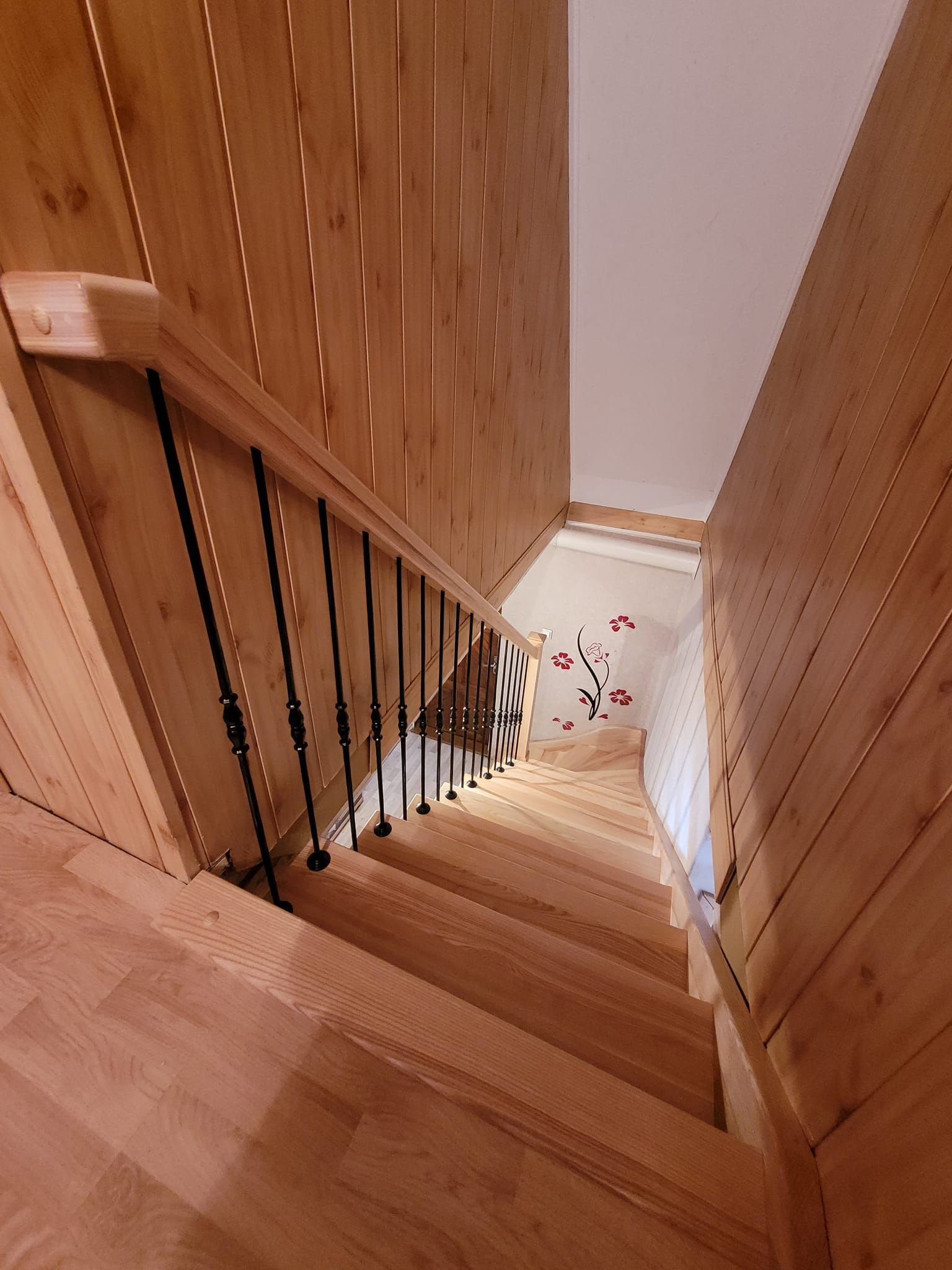 Jei susibraižė medinė laiptų dalis galima naudoti įvairų vašką jos sutvarkymui, bet geriau rekomenduojame išsikviesti specialistą.